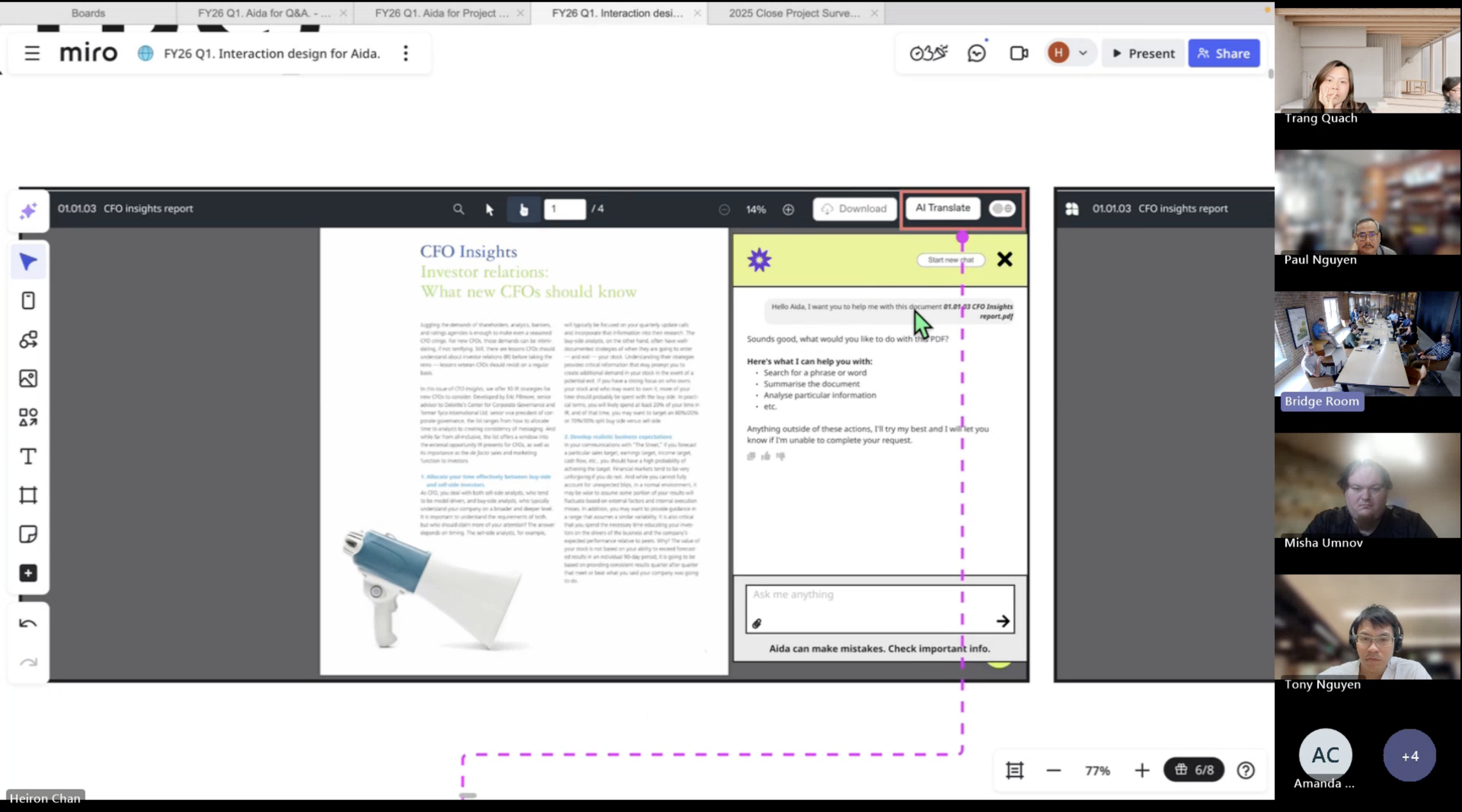 I continue to work closely with the product manager, engineers and QA to test outputs, refine system prompts, and monitor how Aida responds in real scenarios.