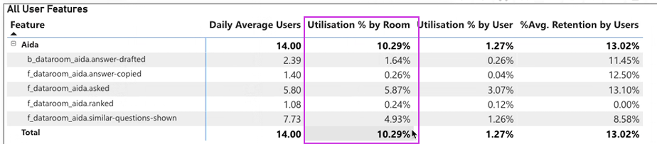 10.3% of all active data rooms are using Aida as of January 2026 (+4% since launch).