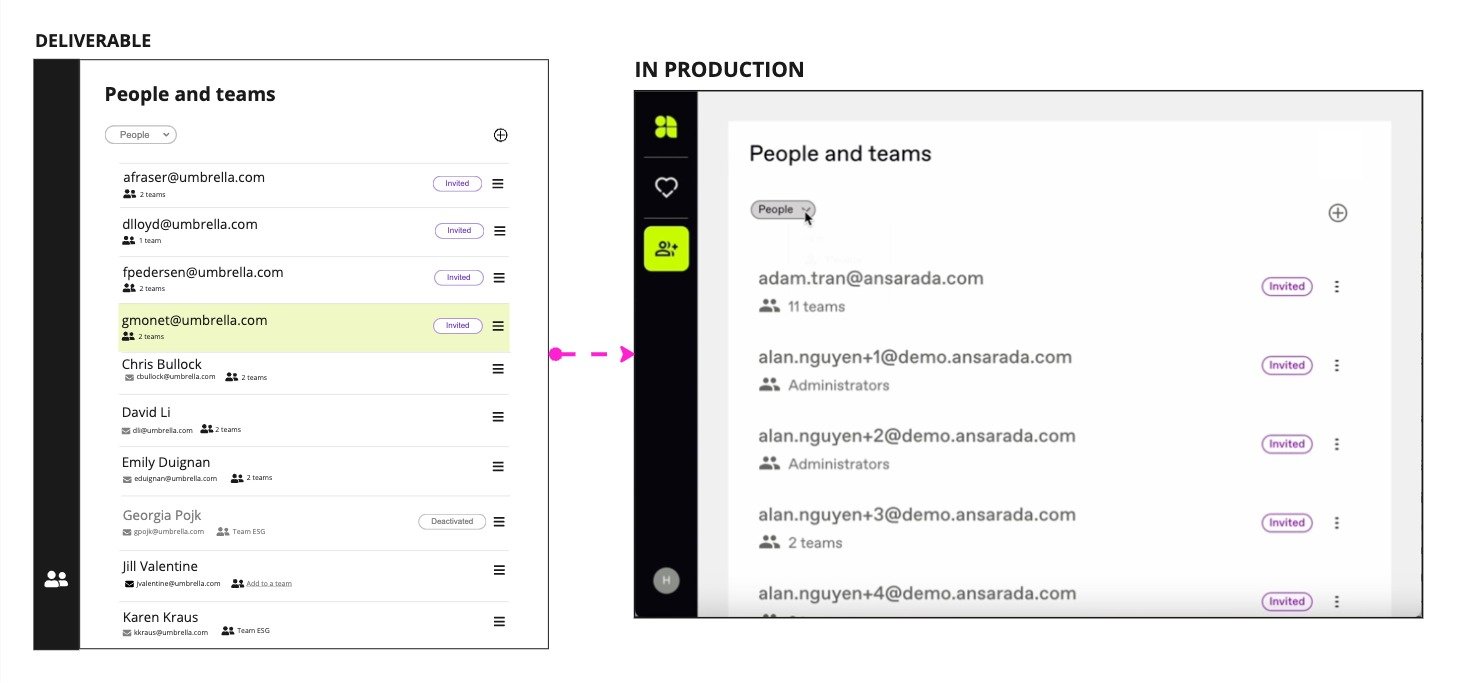 I led the design effort to create a centralized location for managing people and teams across Ansarada's Environmental Social Governance Risk & Compliance (ESGRC) product suite.