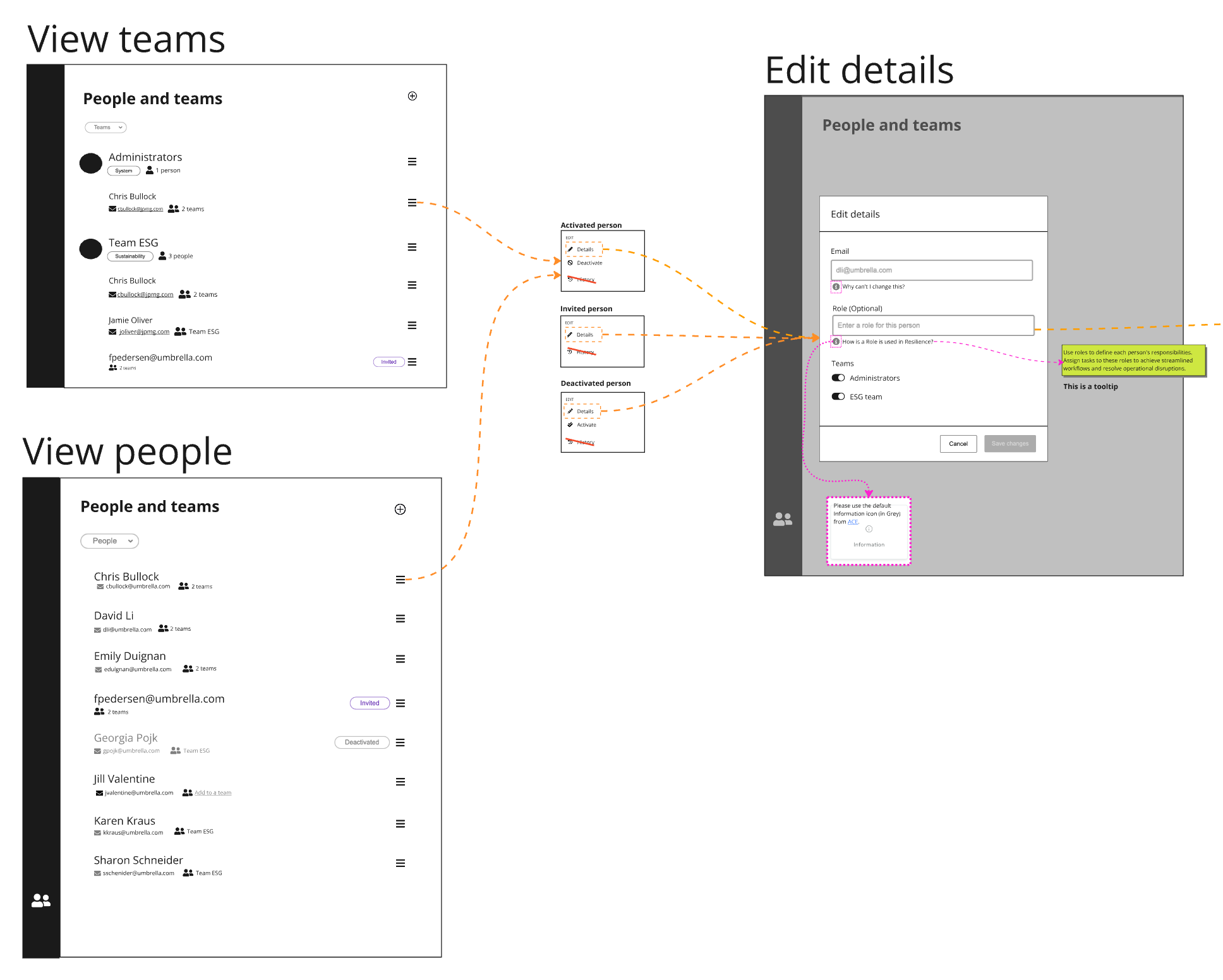 Based on my research, I then created low-fidelity user and team management models to facilitate discussion on our high level approach and align on the constraints we had to work with.